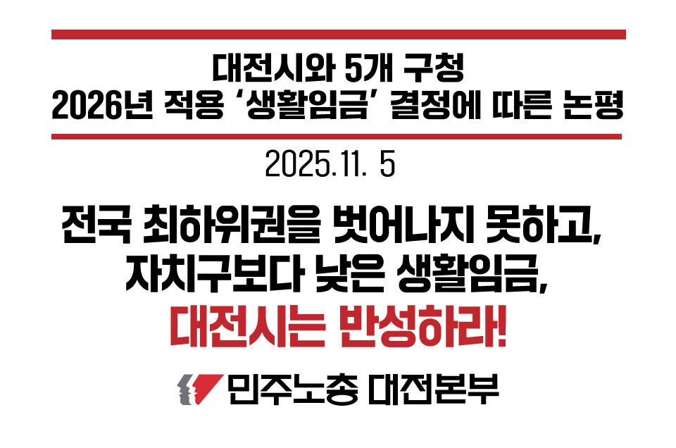 대전시와 5개 구청 2026년 적용 ‘생활임금’ 결정에 따른 논평